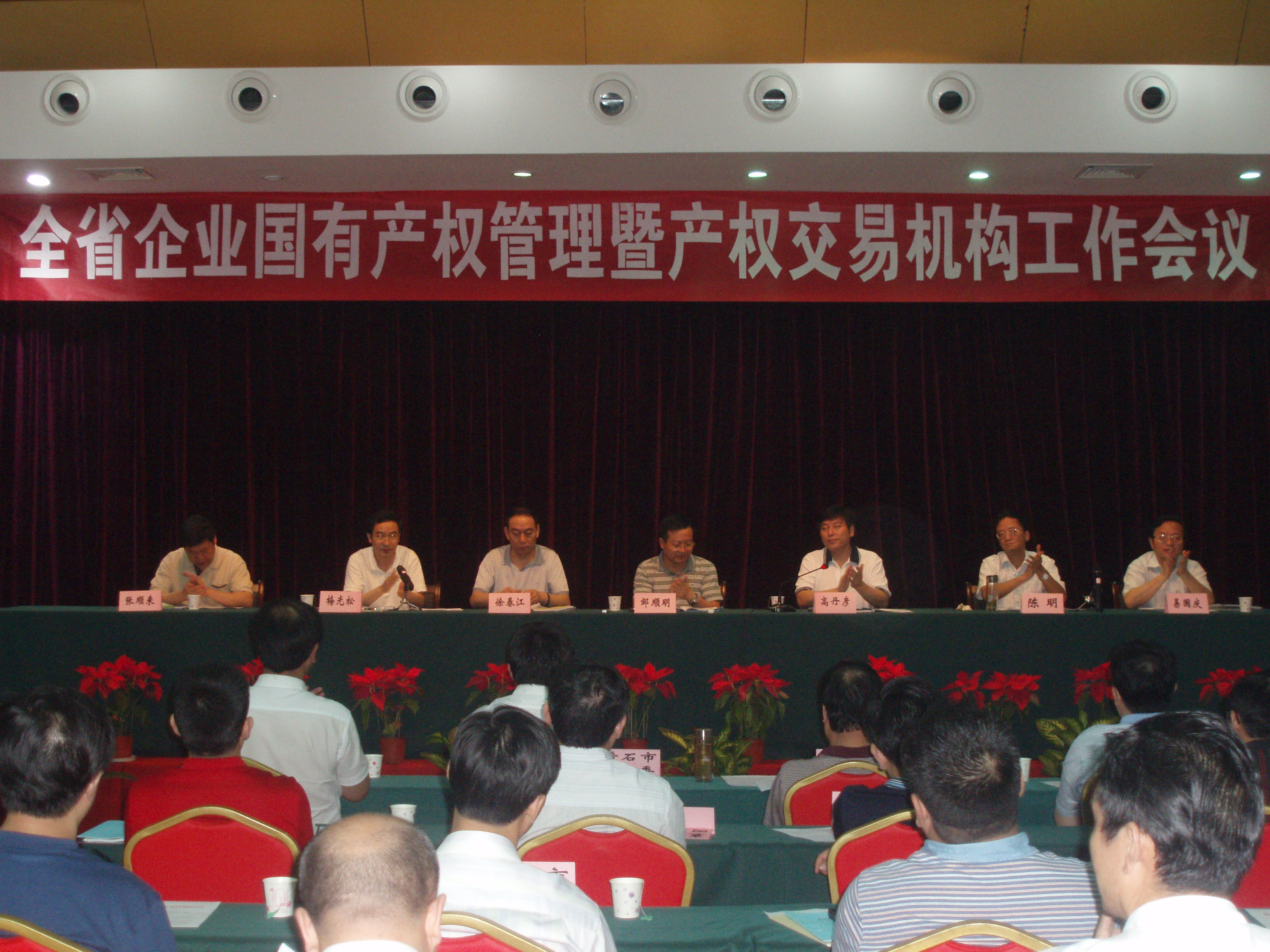 会议由省国资委产权处处长梅光松主持。武汉市政府副秘书长高丹彦向会议致辞。会议表彰了武汉市国资委、宜昌市国资委、黄石市国资委、十堰市国资委、随州市国资委、仙桃市国资办等6家2008年度“全省企业国有产权管理工作先进单位”,和武汉光谷联合产权交易所江城分所、湖北省产权交易中心宜昌分中心、荆门分中心等3个“全省企业国有产权交易工作先进交易机构”。