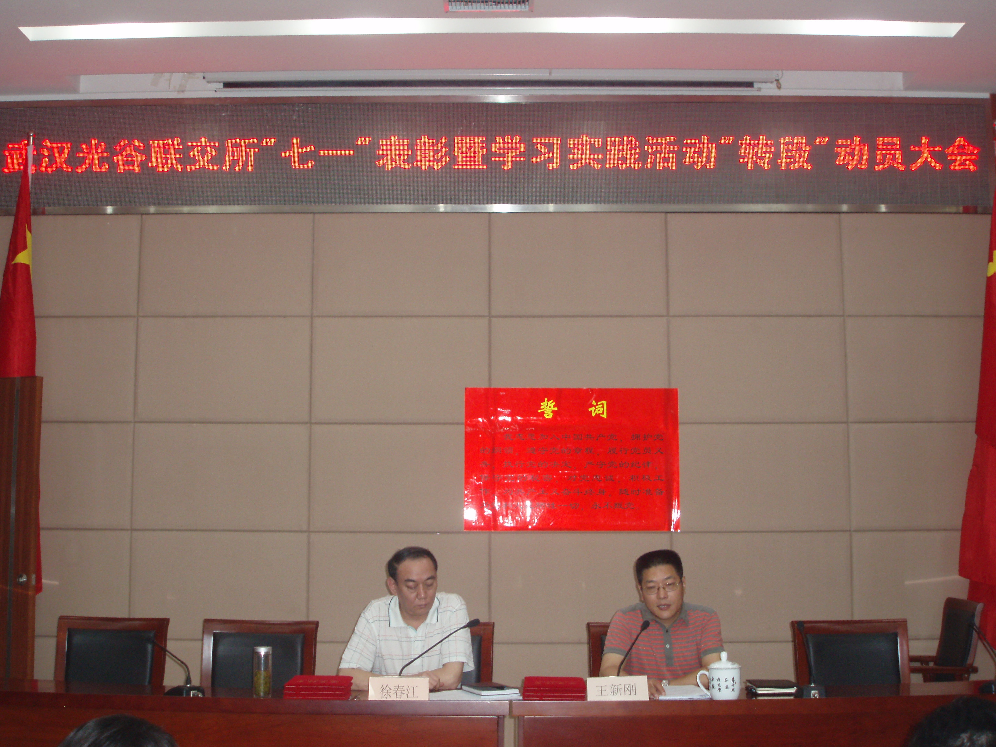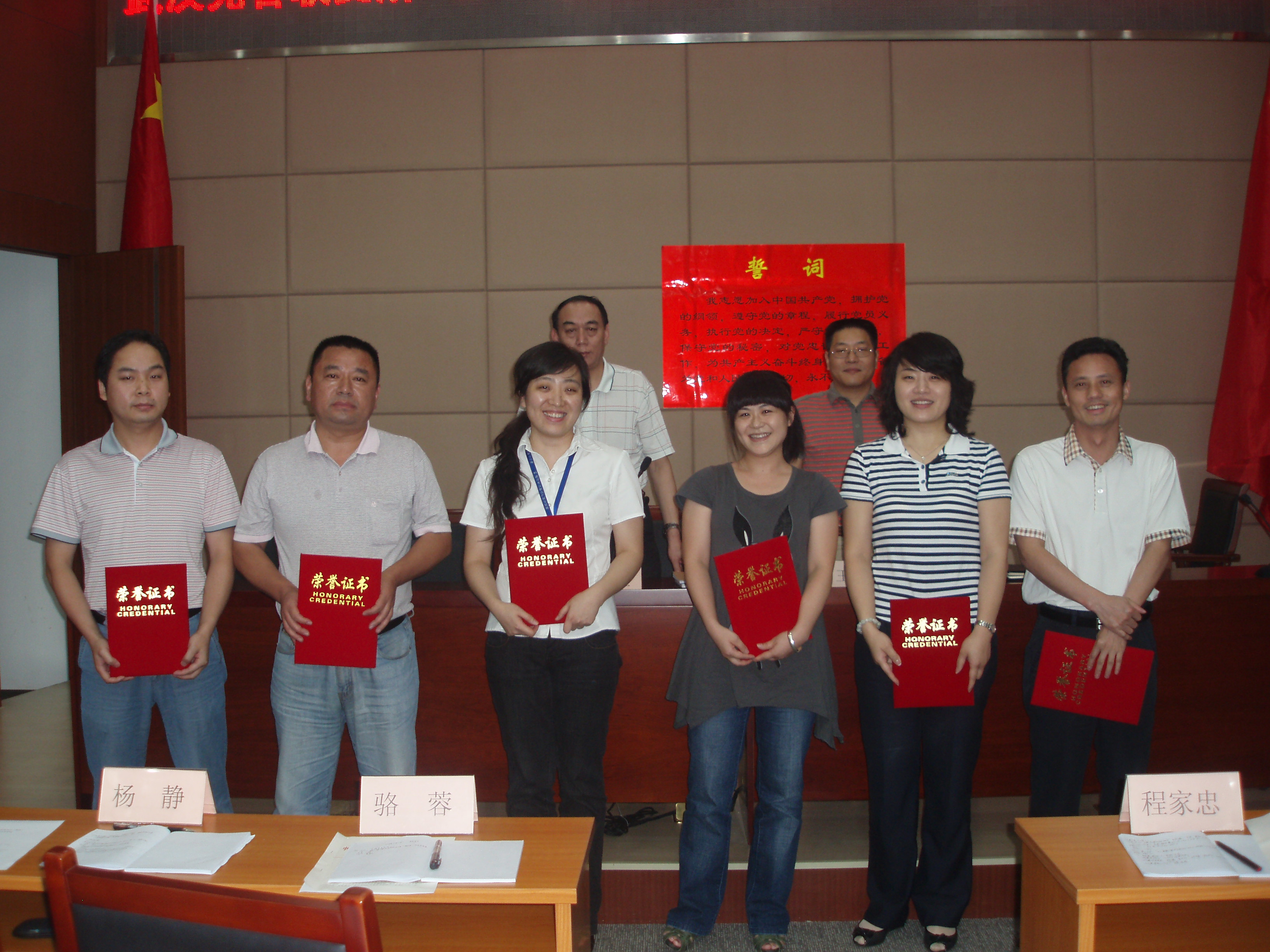 会议由党委副书记、总经理王新刚主持。会上,党委委员、副总经理骆蓉代表所党委宣读了《关于表彰先进党支部、优秀共产党员和优秀党务工作者的决定》。授予江城分所党支部先进党支部,骆蓉、杨静、李佑平、余志均、郭卉、陈义平等6位同志为优秀共产党员,赵发春同志为优秀党务工作者荣誉称号。党委委员、纪委书记杨静,带领新党员在党旗下进行了入党宣誓。