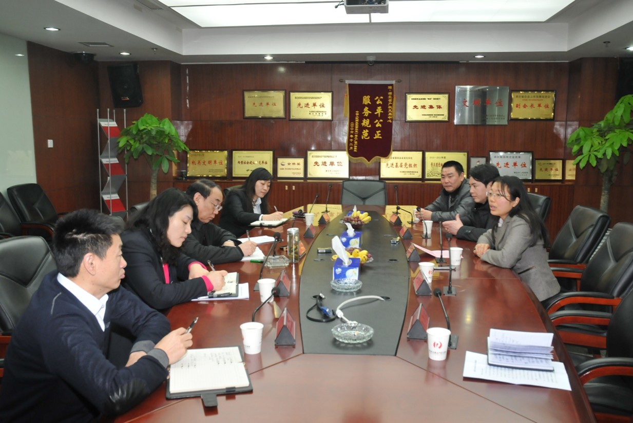 2012年12月21日上午,通山县县长胡娟率县委常委、组织部长胡金荣,县委常委、政法委书记镇卫军,燕厦乡党委书记乐献忠,乡长陈昌义来我所汇报前期与我所扶贫共建成效,共商后期深化合作事宜。党委书记、董事长徐春江率党委经营班子成员热情接待胡县长一行。