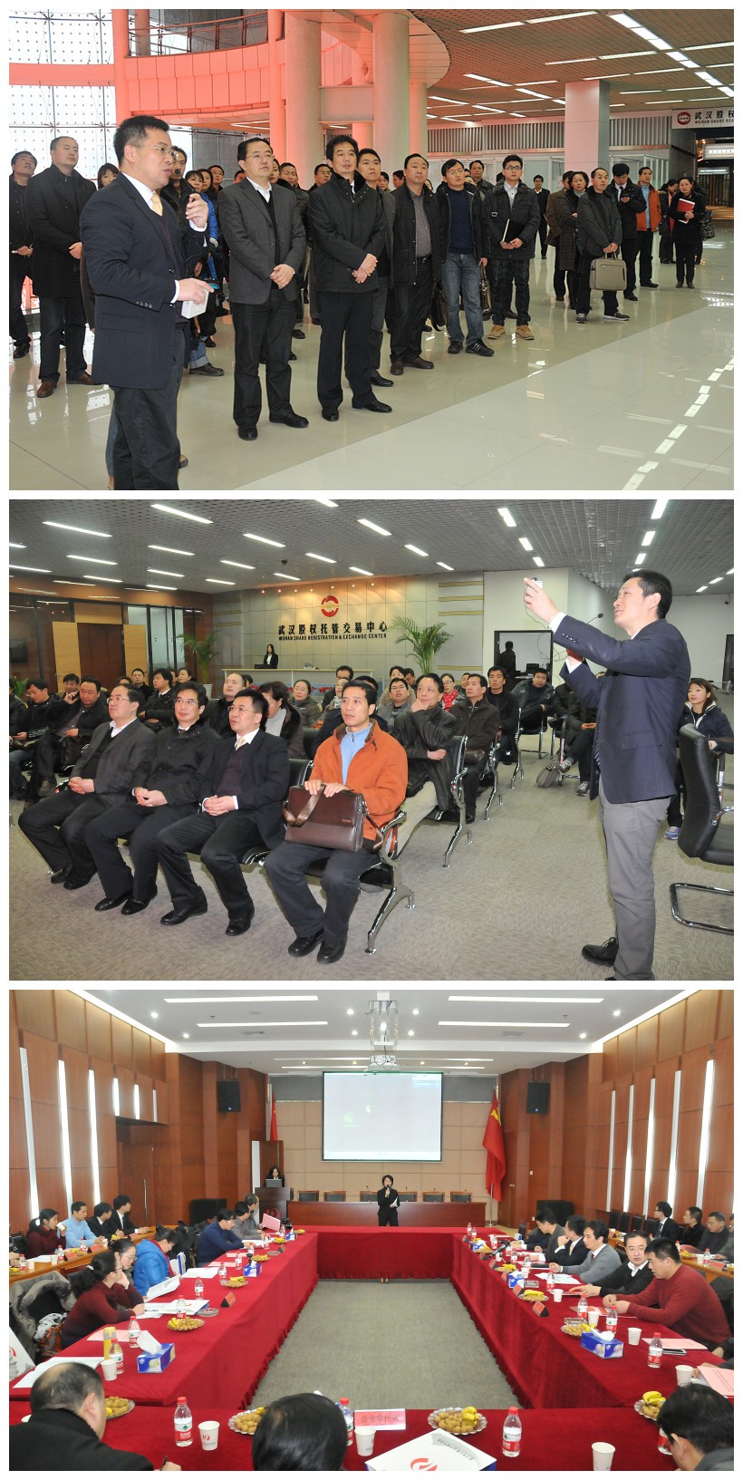 考察团一行参观了光谷资本大厦交易大厅,现场观摩了武汉股权托管交易中心股权托管登记系统和股权交易实时行情发布系统。