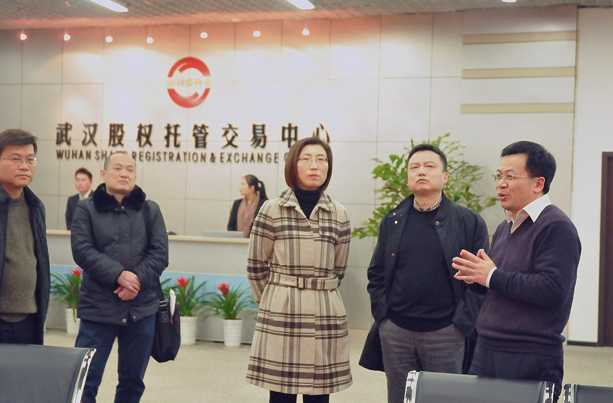 1月10日下午,武汉市政府金融办副主任方杰、副主任梅林一行莅临中心考察调研。武汉东湖新技术开发区管委会发改局局长汪志忠等陪同考察。