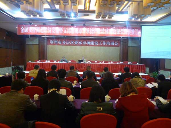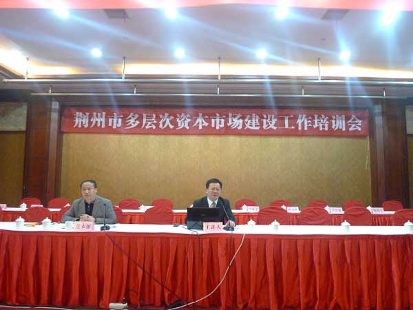 荆州多层次资本市场建设工作培训会由市政府副秘书长范本源主持。深圳证券交易所上市推广部华中区副主任范文学、武汉股权托管交易中心总经理龚波、长江证券承销保荐有限公司企业融资部高级经理邓毅分别做了“多层次资本市场与深交所市场培育和服务体系”、“荆州企业登陆武汉股权托管交易中心股权挂牌与融资实务”和“证券公司在企业登录多层次资本市场中的角色和作用”的主题培训讲座。