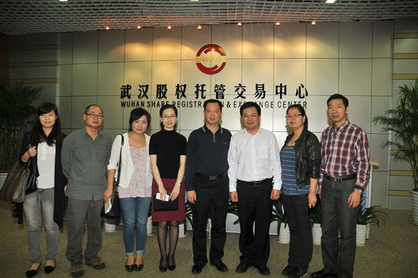 2013年5月9日上午,长江商报社党委书记、社长蒋经韬一行访问武汉光谷联交所和武汉股权托管交易中心。我所常务副总经理、武汉股权托管交易中心总经理龚波热情接待了蒋经韬社长一行。