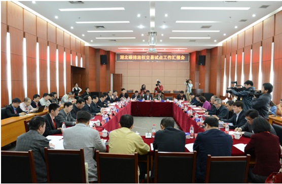 4月2日上午,湖北省碳排放权交易启动仪式在武汉光谷联合产权交易所成功举行后,随即在联交所五楼多功能厅举行了湖北碳排放权试点工作座谈会。国家发展改革委副主任解振华、国家发改委应对气候变化司有关负责同志以及山西、安徽、江西、河南、湖南广东等省发改委负责同志参加会议,省委常委、常务副省长王晓东主持会议。座谈会上,湖北省发改委主任李乐成对湖北试点实施情况作了介绍,湖北碳排放权交易中心总经理刘汉武汇报了交易中心建设情况。