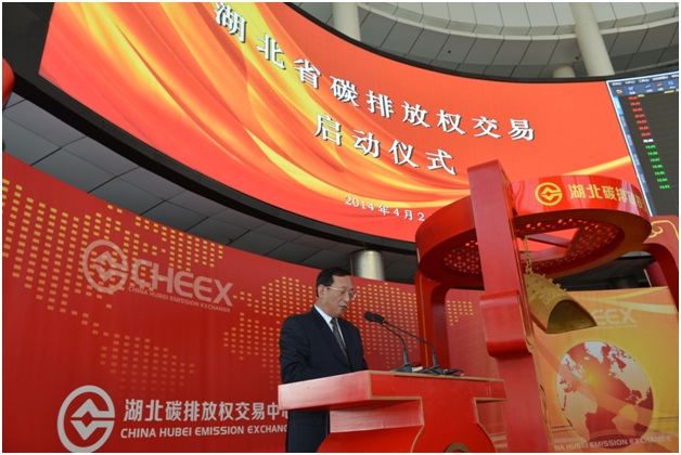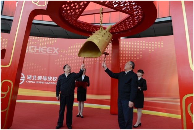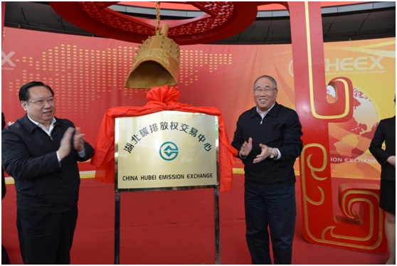 4月2日上午,湖北省碳排放权交易启动仪式在武汉光谷联交所举行,国家发展改革委副主任解振华和湖北省委常委、常务副省长王晓东共同为湖北碳排放权交易中心揭牌并鸣钟开市,标志着第一批国家碳排放权交易试点省市之一——湖北碳市场正式启动,启动首日共有22家企业实现19笔交易,成交数量约为51万吨,成交额约为1071万元。