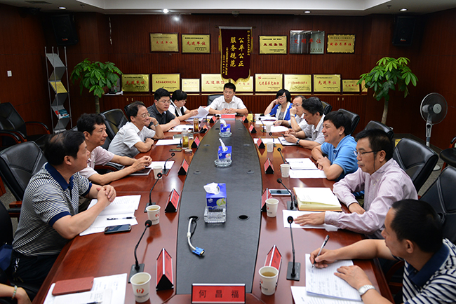 2014年7月17日上午,广西国资委副主任秦武亮和广西北部湾产权交易所董事长王小恕一行来我所调研。在湖北省国资委副巡视员孙骏的陪同下,调研组一行先后参观了光谷联交所和武汉股权托管交易中心等专业创新平台,随后到我所进行座谈交流。