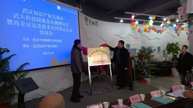 1月8日下午,武汉知识产权交易所武大科技园服务站揭牌仪式在武大科技园青桐园咖啡举行,武汉大学科技园区有限公司总经理宋宏杰和我所领导为服务站揭牌。武汉大学科技园区30余家企业代表参加了揭牌仪式和首场高新企业认定培训会。