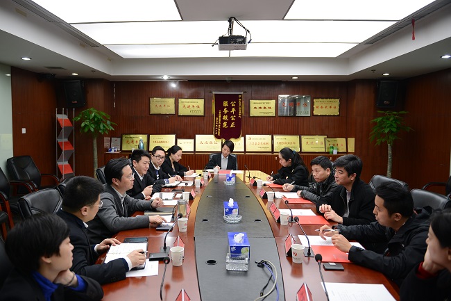 童俊董事长介绍了华中科技大产业集团的构成板块和主要业务,并就规范高校国有资产交易和创新知识产权交易等方面进行深入交流,希望双方互相支持、加强合作。