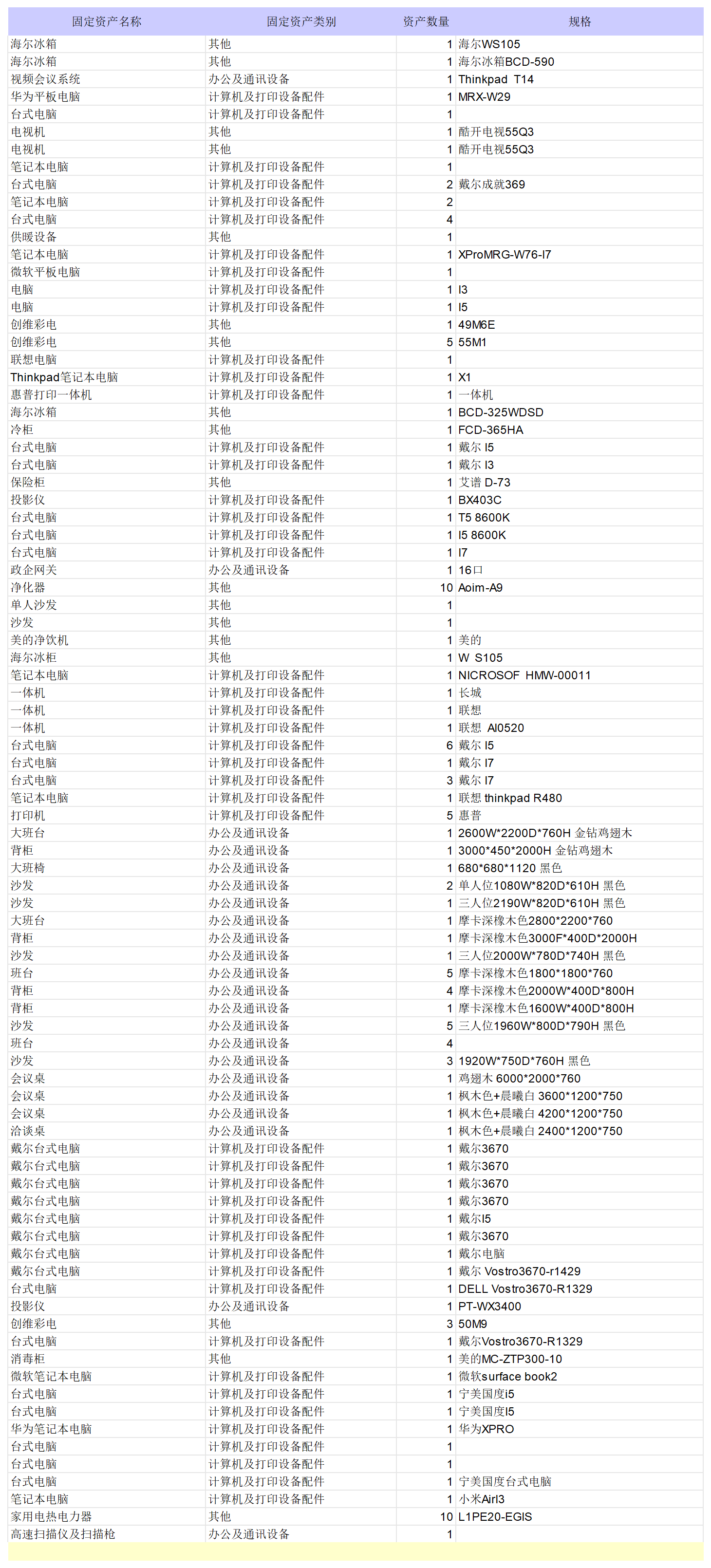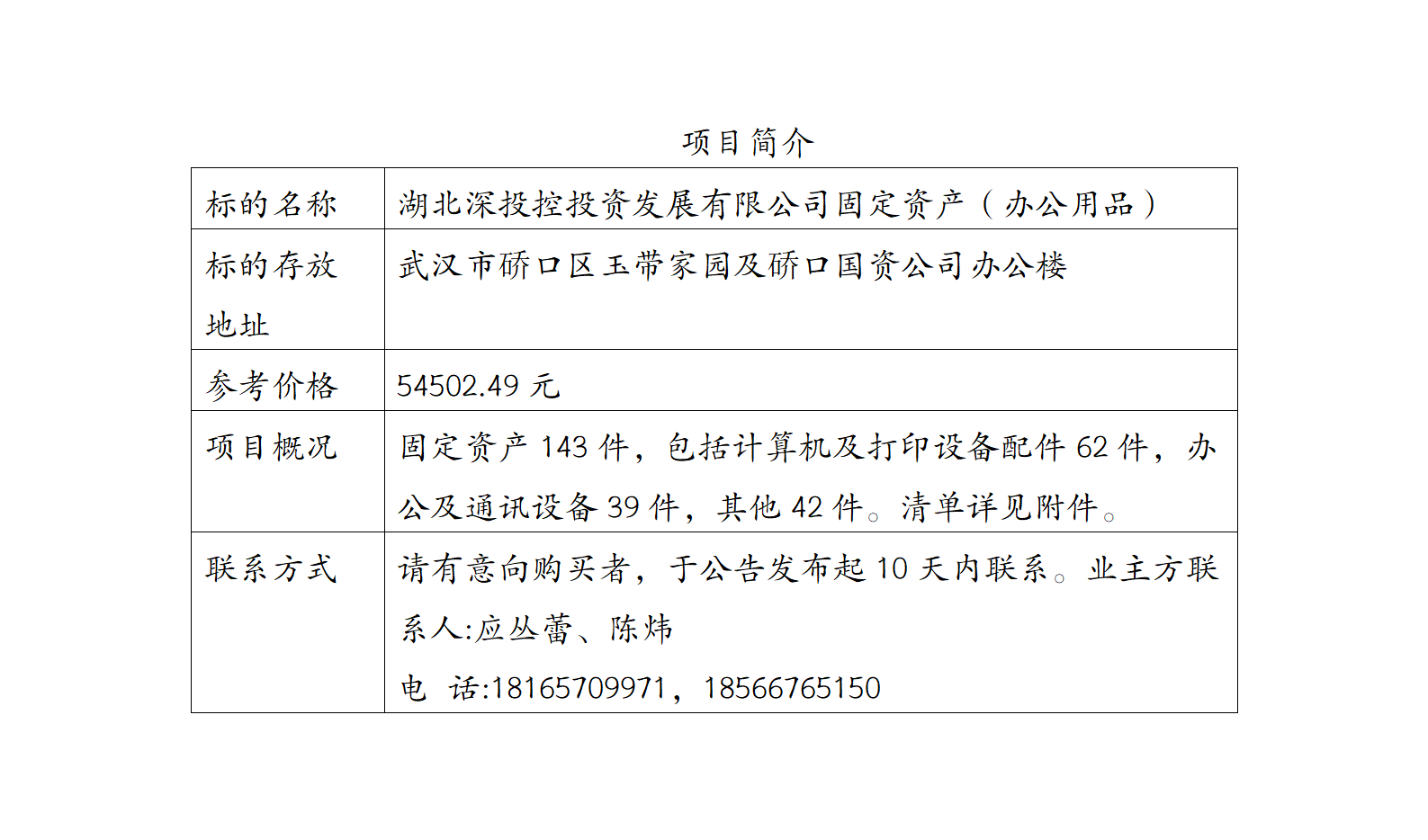 湖北深投控投资发展有限公司固定资产(办公用品)