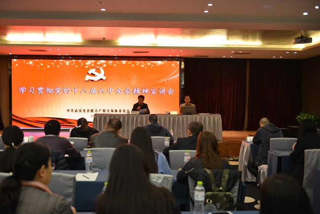 根据省委统一安排部署,11月17日上午,省委宣讲团来我所宣讲十八届六中全会精神。公司本部、各平台、江城公司全体党员、干部员工参加会议。会议由党委副书记、总经理卢胜主持。
