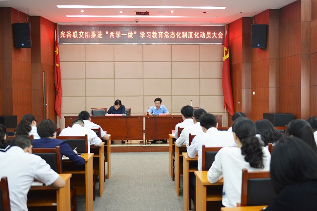 5月15日上午,所党委召开推进“两学一做”学习教育常态化制度化动员会议,会议由纪委书记杨静主持,光谷联交所领导班子成员、本部全体党员和江城公司、平台各支部书记、委员近70人参加了会议。