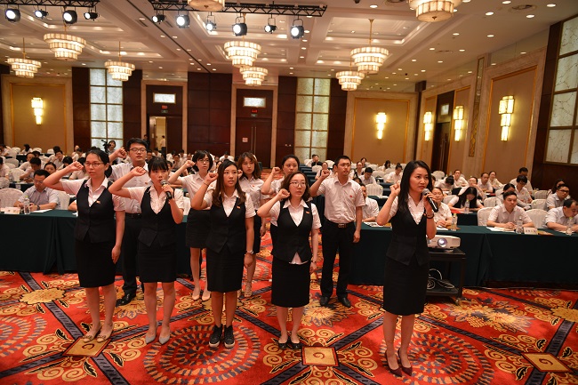 会议在庄严肃穆的《国歌》声中开始,党委委员、副总经理杨静主持会议,党委委员、纪委书记易明宣读了《关于表彰2016-2017年度先进党支部、先进党小组、优秀共产党员、优秀党务工作者的决定》。会议表彰了10名优秀共产党员、5名优秀党务工作者、5个先进党支部和5个先进党小组,听取了先进典型发言,新党员进行入党宣誓,全体参会党员重温了入党誓词。