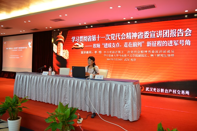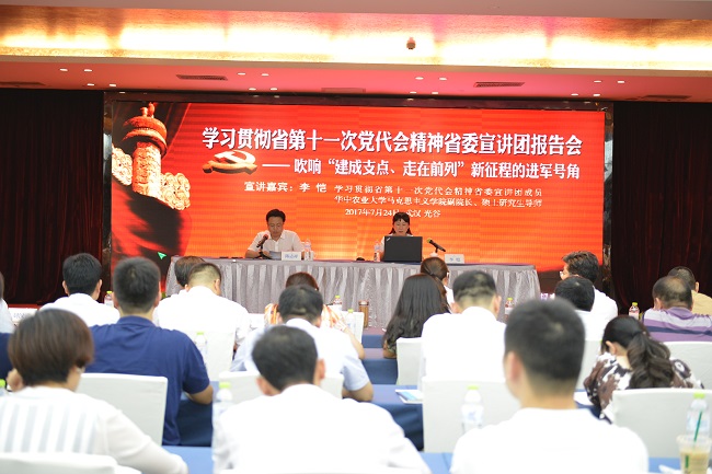 省委宣讲团成员、华中农业大学马克思主义学院副院长李恺教授作专题讲座。李恺教授围绕“总结新成就新经验”、“认识新机遇新挑战”、“领会新目标新征程”和“贯彻新部署新举措”四个方面,全面系统地解读了省第十一次党代会主要精神,紧扣“一大使命”、“两大任务”、“三个高地”、“四个全面”、“五个湖北”、“六个新机遇”等关键词,运用翔实的数据和丰富的事例,诠释了党代会报告的核心要义,为我所党员干部进一步深入学习理解和准确把握省第十一次党代会精神提供了理论指导。
